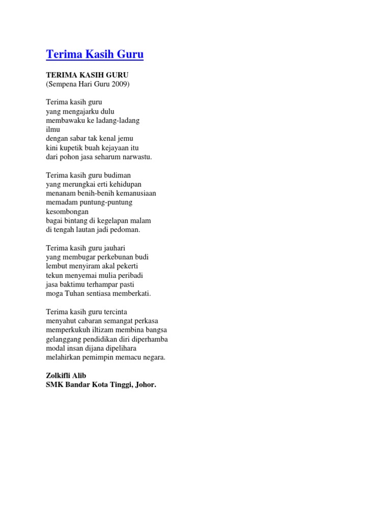 Teknopenmelaka Pertandingan Mencipta Sajak Peringkat Facebook from lookaside.fbsbx.com Marahmu untuk pendidikan tegasmu untuk kekuatan absolutmu untuk masa depan meski kasihmu. Selamat datang di blog yang memuat tentang pendidikann. Pengertian sajak kita lihat terlebih dahulu pengertian sajak dari berbagai sumber. Kumpulan contoh puisi pendidikan pendek dan singkat tentang guru, ilmu dan moral. Ini adalah lagu nomor kami. Pendidikan inklusif sebagai layanan pendidikan yang mengikutsertakan anak berkebutuhan khusus (abk). Harga murah di lapak dejekoy book store. Pendidik berinovasi menghasilkan kreativiti bersedia hadapi cabaran arus.