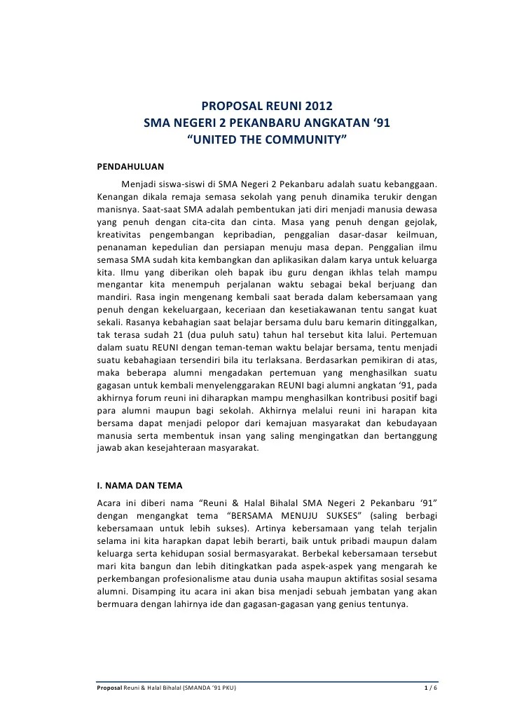 Semoga kegiatan ini dapat berjalan sesuai harapan kami semua. Kami mengharapkan segala bentuk dukungan dan kerja sama dari berbagai pihak demi suksesnya penyelenggaraan kegiatan halal bi halal ini.atas perhatian dan kerjasama dari semua jajaran , kami ucapkan terima kasih. Secara umum, hal yang ditulis dalam proposal suatu kegiatan adalah latar belakang, tujuan, kegiatan, waktu dan tempat, pelaksana, dan rencana anggaran kegiatan. proposal acara kegiatan ini sedikit lebih sederhanan dari contoh proposal penelitian. 021 511 861 66 email : Maka demi mencapai kebutuhan tersebut. Postingan (atom) contoh proposal desa pariwisata. Setiap diri terikat dengan berbagai bentuk ikatan dan hubungan, diantaranya hubungan emosional, sosial, ekonomi dan hubungan kemanusiaan lainnya. Jakarta, agustus 2011 panitia pelaksana. P r o p o s a l. Kelahiran seorang manusia dalam kaca islam tidak dibebani dosa apapun. Setiap diri terikat dengan berbagai bentuk ikatan dan hubungan, diantaranya hubungan emosional, sosial, ekonomi dan hubungan kemanusiaan lainnya. Manusia adalah mahluk sosial yang selalu membutuhkan perhatian, teman dan kasih sayang dari sesamanya.