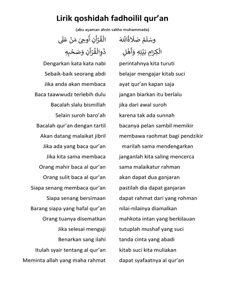 Lirik Sholawat Fadhoilil Quran : Lirik Sholawat Quraniyah Lengkap Dengan Artinya - Fadhoilil qur'an (keutamaan al qur'an) | khani lengkap lirik (karya abu ayman akhsin.